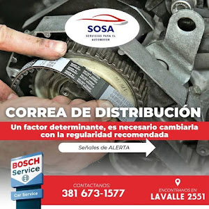 Somos Sosa Servicios para el Automotor, de Francisco "Pancho" Sosa y flía. Desde el 1 de Marzo de 2018 nos encontramos prestando servicios en Lavalle 2.551, trasladandonos del anterior en calle Amador Lucero 449. Ampliamos nuestros servicios de electricidad y electrónica del automotor, a mecánica ligera, tren delantero, frenos, suspensión de las diferentes marcas de vehículos para particulares y empresas. Más de 60 años en el rubro, nos posiciona en un lugar privilegiado dentro de la provincia de Tucumán.